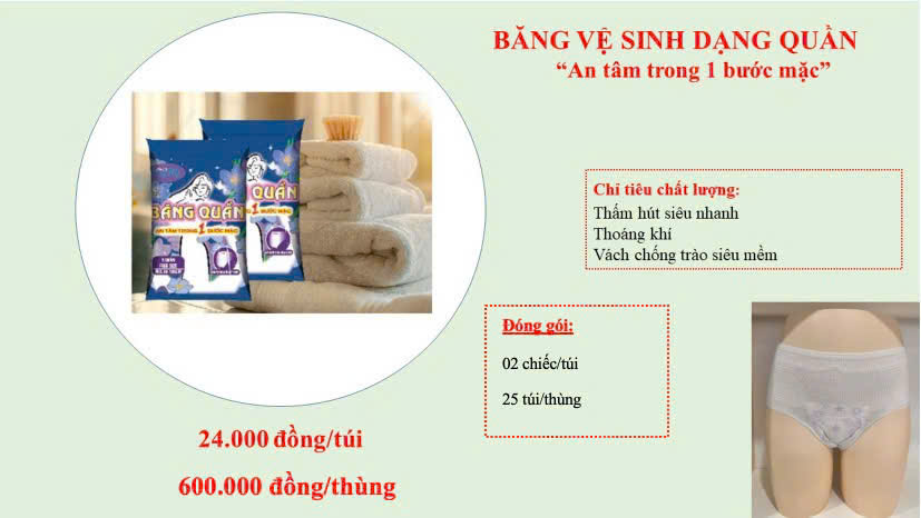 Bóc lớp vải không dệt bọc ngoài sản phẩm và mặc thay quần lót. Sau khi sử dụng xong, xé đường thun bên hông để cởi ra. Cuộn băng lại sao cho bề mặt bị bẩn nằm ở phía trong, dùng vỏ ngoài của miếng sản phẩm cuốn xung quanh và bỏ vào sọt rác.